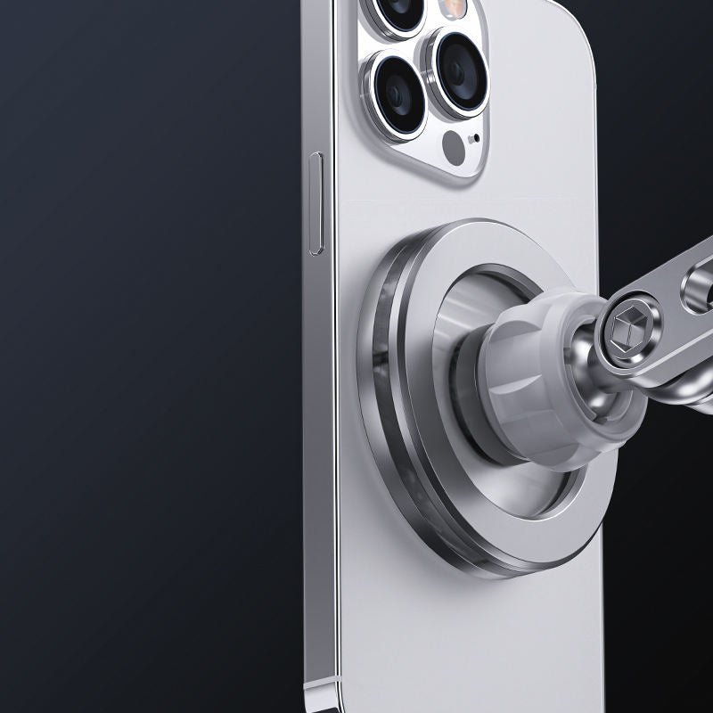 Crafted from high-quality aluminum alloy with a silicone pad base, this stand offers exceptional stability and durability while protecting surfaces from scratches. Built-in N52 magnets provide a strong magnetic hold for iPhone users, while Android devices can be attached using the included magnetic ring for universal compatibility.